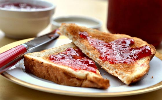وجبة الإفطار: مائة وخمسة وعشرون مللي من عصير البرتقال - شريحة توست مع ملعقتين صغيرتين من المربى أو عسل النحل.