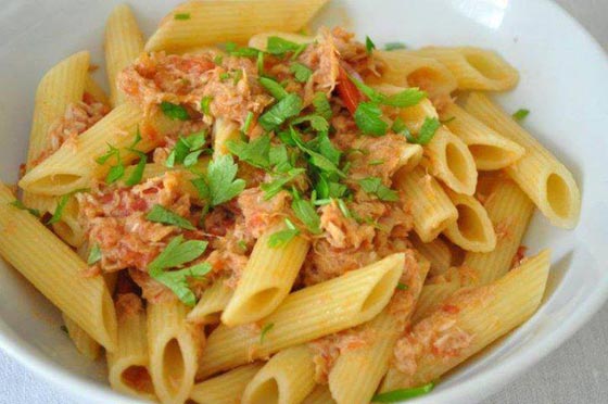 المكرونة بالتونة:
