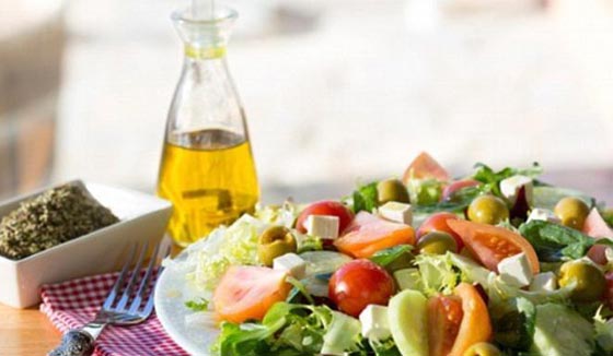 وهذا النظام الغذائي لا يتضمن تناول الكثير من اللحوم، بينما يعتمد على تناول زيت الزيتون بشكل أساسي، حيث أنه مصدر هام للدهون المفيدة للجسم. وقد أظهر الباحثون أيضا أن البكتيريا الحية، التي يتم استخدامها لتحضير اللبن، قد تساهم أيضا في توفير صحة جيدة لسكان حوض البحر الأبيض المتوسط. كما أن من العناصر الهامة التي تستخدم في النظام الغذائي للبحر المتوسط هو الثوم يساعد على منع الإصابة بجلطات الدم وانخفاض مستوى الكوليسترول كما أنه يساعد أيضا في الحماية ضد مرض السرطان.