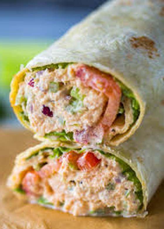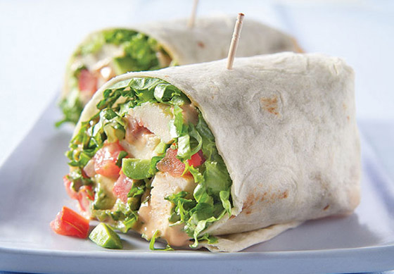 4. وزعي المزيج على خبز التورتيلا ثم وزعي الخس فوقه ولفي الخبز على شكل رولات وقدميها.