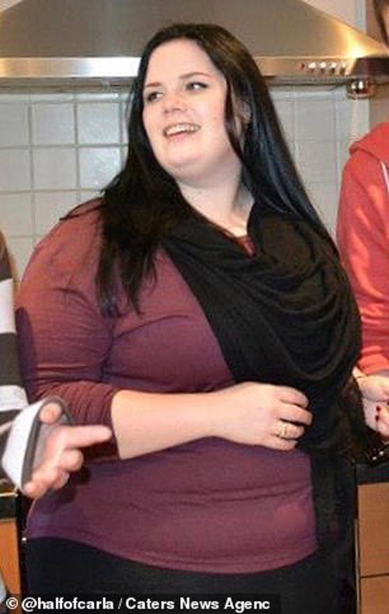 وصل وزن كارلا الى 147 كيلوغرام وجربت كل انواع الريجيم التي سمعت عنها، لكن بدون فائدة.. واخيرا قال لها الطبيب انها مدمنة على الطعام وعليها مواجهة الحقيقة والتصميم على علاج المشكلة..