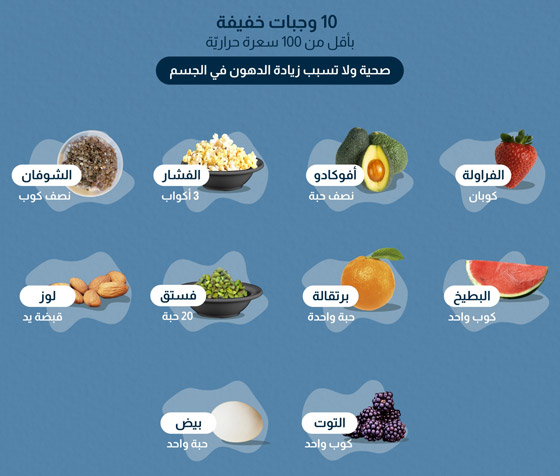 إذا كنت تتبع نظامًا غذائيًا معينًا وتُحاول إنقاص وزنك، فأنت حتمًا تعمد إلى احتساب السُعرات الحرارية التي تتناولها على مدار اليوم. ونشر حساب "عش بصحة"، أي المنصة الرئيسية للتوعية الصحية بوزارة الصحة السعودية، عبر منصة "X"، قائمة بـ10 وجبات خفيفة تحتوي على أقل من 100 سعرة حرارية. وأشار إلى أن جميعها صحيّة، ولا تُسبب زيادة الدهون في الجسم. وتشمل ما يلي: