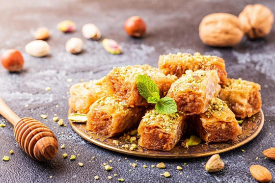 9. ضعوا البقلاوة في طبق التقديم، وقدموها.