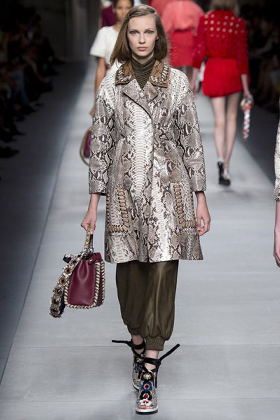 معطف فاخر مصمم بنقشة جلد الأفعى من توقيع فندي Fendi.