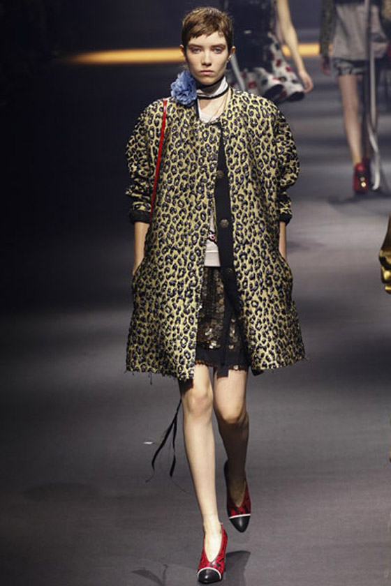 معطف أنيق بنقشات رائعة وياقات عريضة من توقيع ميو ميو Miu Miu.