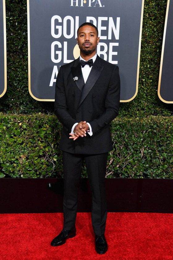 - اختار الممثل الأميركي مايكل بي جوردن بدلته السوداء ذات الأسرار المزدوجة على الصدر من Burberry. وقد زيّنها ببروش ماسي من Cartier.