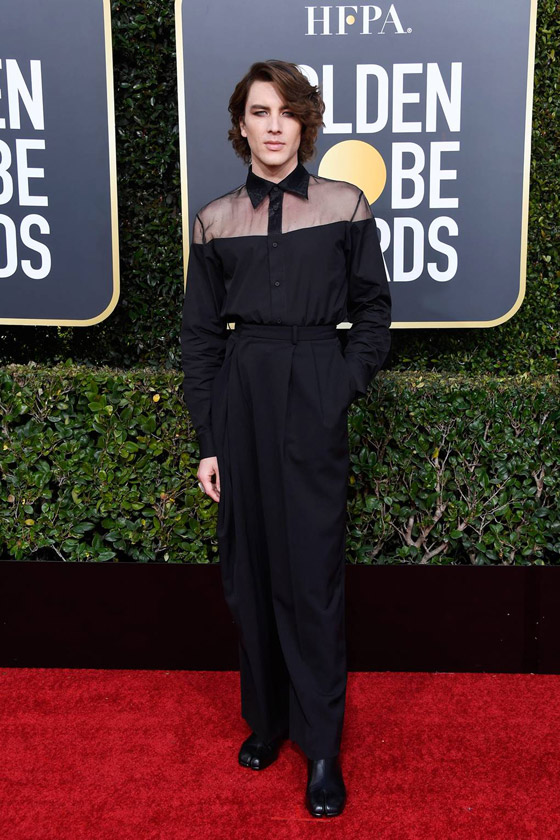 - اختار الممثل الأسترالي كودي فيرن إطلالة مثيرة للجدل حملت توقيع دار Margiela تألفّت من قميص شفّاف في القسم الأعلى منه وسروال كلاسيكي باللون الأسود.