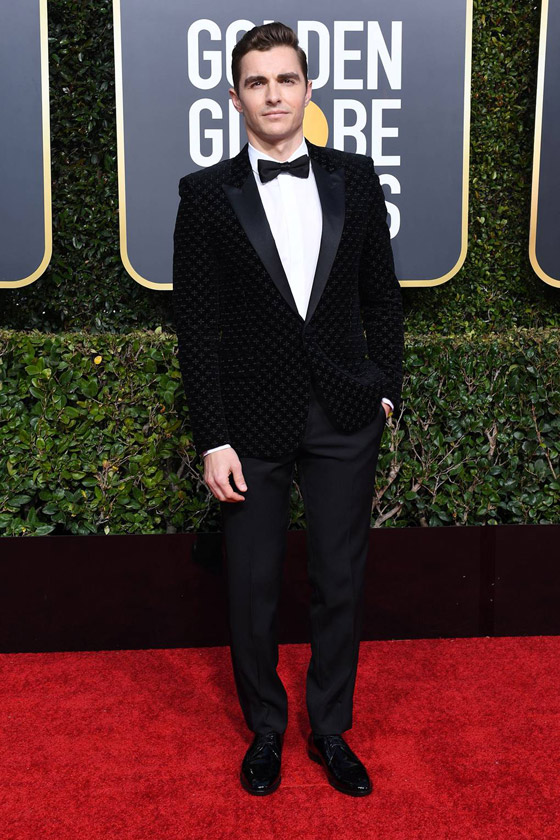 - اعتمد الممثل الأميركي دايف فرانكو إطلالة مميزة حملت توقيع دار Saint Laurent وتألّفت من سترة مخمليّة مطبّعة باللون الأسود تمّ تنسيقها مع سروال وربطة عنق باللون نفسه.