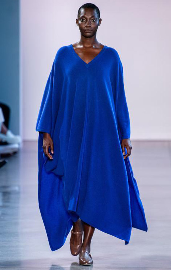 يعتبر اللون الأزرق، بمختلف درجاته، من الألوان الشديدة التأثير في طلّة المرأة ويضفي الكثير من الإشراق على حضورها. تناسب هذه الدرجة الداكنة من الأزرق صاحبات البشرة البيضاء، كما أنّه قد يبدو جميلاً على البشرة البرونزيّة، ولكن بدرجاته الفاتحة.