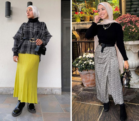 تُعدّ التنانير الواسعة من القطع المثالية للسيدة المحجبة، فموضتها لا تبطل أبدًا مهما تبدّلت المواسم، كما أنها تعطي السيدة المحجبة إطلالة محتشمة وأنيقة في الوقت ذاته. ويمكنكِ خلال فصل الشتاء، تنسيق التنورة الواسعة مع الأحذية الطويلة والجاكيتات الدافئة، كما يمكنكِ إضافة حزام لها، ليعطيها مظهرًا أكثر تميزًا.
