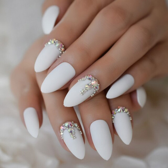 ويمكن تركيب أظافر بيضاء مزينة بالفضة والتي تساعد على تفتيح لون البشرة وتتوافق مع ألوان الفساتين المختلفة وتساعد في الحصول على إطلالة أنيقة ومميزة.