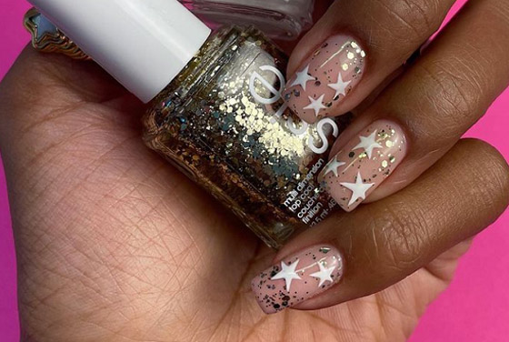 يعتبر رسم نجوم على الأظافر من الأفكار الكلاسيكية التي يمكن تنفيذها عند الاستعداد لحضور حفل وذلك من خلال طلاء الأظافر بلون وردى مع رسم نجوم بيضاء أو ذهبية اللون للحصول على إطلالة أنيقة أو لصق النجوم على الأظافر مع تزينها باللون الذهبى.
