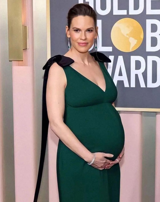 وفي حفل غولدن غلوب الأخير ارتأت النجمة هيلاري سوانك Hilary Swank ارتداء فستان أخضر طويل بلون العشب وهو مصنوع من الكريب، ويزدان بشرائط من الساتان الأسود عند كتفيه. الفستان من تصميم برادا Prada وتزينت بمجوهرات من تيفاني أند كو Tiffany & Co.