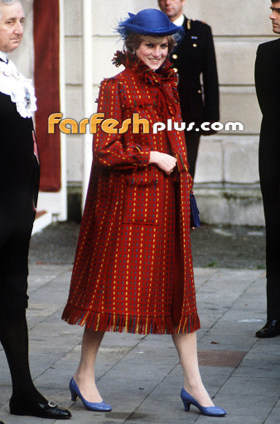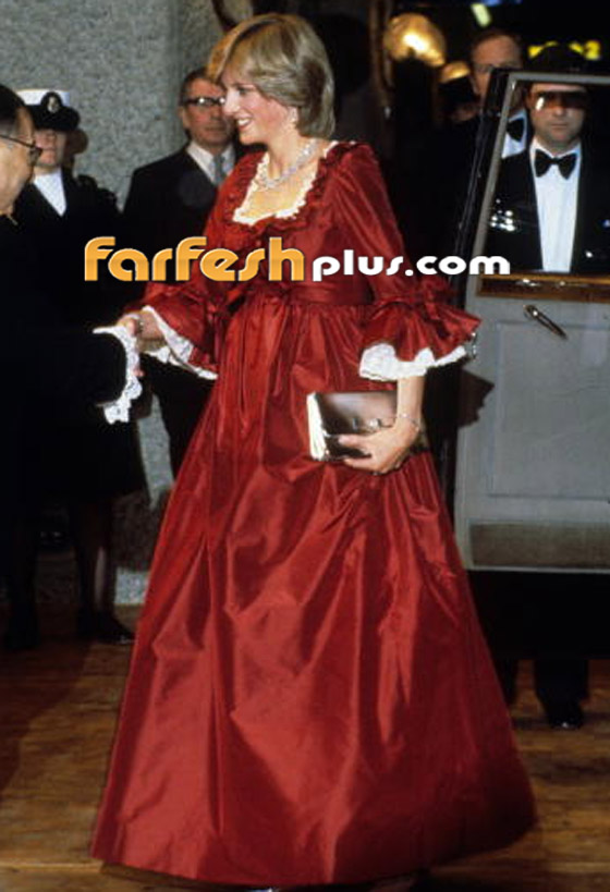 وارتدت فستاناً آخر أحمر اللون من العلامة نفسها مع ياقة مربعة من أجل حضور حفلة في مركز باربيكان في لندن عام 1982.كما ارتدت فستاناً أبيض اللون بأكمام ضخمة لحضور إحدى الحفلات.واستمرت بارتداء الملابس الواسعة وهي حامل بالأمير هاري. حيث ارتدت توباً وتنورة بتصميم البحارة لحضور مباراة بولو في وندسور. وارتدت فستاناً من كاثرين ووكر Catherine Walker أزرق اللون لحضور حفل افتتاح فيلم إنديانا جونز ومعبد الموت Indiana Jones and the Temple of Doom.