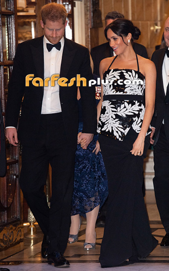 تميزت إطلالات ميغان ماركل دوقة ساسكس خلال حملها بابنها أرتشي بالتصاميم المميزة والملفتة. وتحديداً ما ارتدته من أجل حضور أول حفل رويال فاريتي Royal Variety حين ارتدت توباً مرصعاً بالترتر من صافيا Safiyaa مع تنورة طويلة تصل للأرض.