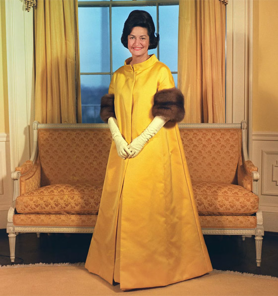 باعتبارها السيدة الأولى، كانت ليدي بيرد جونسون أول من تولت دوراً أكثر نشاطاً أثناء أداء اليمين الرئاسية، حيث حملت الكتاب المقدس للرئيس ليندون جونسون في عام 1965، وهو الاختيار الذي أصبح تقليداً منذ ذلك الحين. وكانت قد أصبحت السيدة الأولى بالفعل لأكثر من عام، ولكن التنصيب الأول للرئيس حدث بسرعة وبصورة قاتمة على متن الطائرة الرئاسية خلال الساعات التي أعقبت اغتيال جون ف. كينيدي. في الصور من حدث عام 1965، برزت جونسون باللون الأحمر المذهل وسط العديد من البدلات السوداء. لكن فستانها الساتان الأصفر الزاهي ومعطفها المزين بالأسود من تلك الأمسية أصبحا أحد أكثر إطلالات يوم التنصيب التي لا تُنسى.