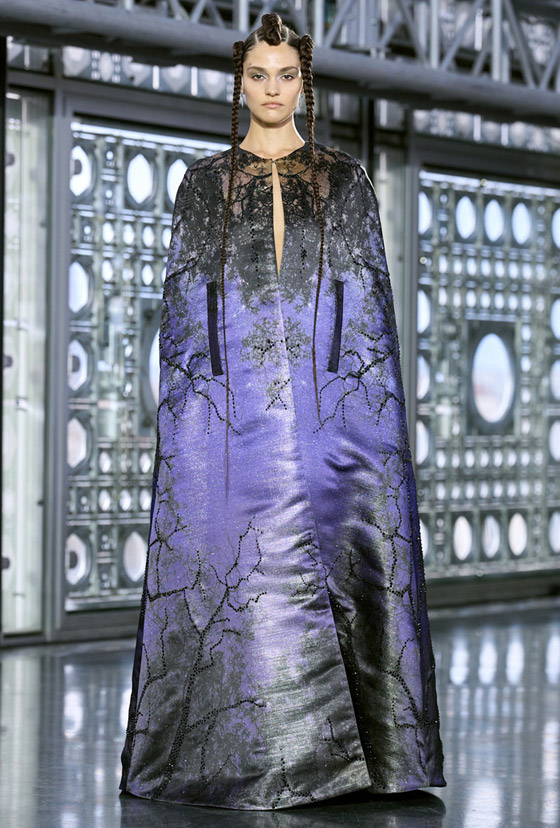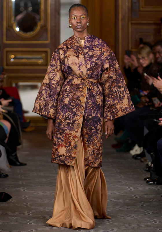 سيطرت القصات العصرية على القفاطين التي قدمتها عروض أسبوع باريس للهوت كوتور ليثبت المصممون أنها لم تعد زياً تقليدياً بل نمط أزياء عالمي يمكن التأنق به في مختلف المناسبات، اللافت هذا العام هو الحضور الكبير للموديلات القصيرة والميدي، رصدنا هذا الستايل في عرض ماركة إيمان عيسي Imane Ayissi فقد تألقت إحدى العارضات بقفطان قصير مزود بحزام معقود من الأمام ومزخرف باللون الأرجواني ومنسق مع فستان طويل باللون الجملي، أكملي هذا اللوك المحتشم بطرحة من اللون نفسه، واختاري الحذاء والحقيبة باللون الأرجواني، وارتدي أقراطًا وخاتمًا من الذهب الأصفر.