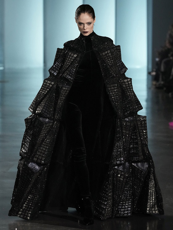 إذا كنتِ مدعوة لحضور مناسبة خلال الشهر الفضيل فننصحك باعتماد واحدة من العبايات المطرزة التي تسابق المصممون على تقديمها في مجموعات ربيع وصيف 2025، ولفتنا منها العباية السوداء الطبقات التي أطلت بها عارضة ماركة راهول ميشرا. نسقيها على طريقتها مع جمبسوت مخمل أسود، أو فستان مخمل لتحافظي على ستايلك المحتشم، وتممي أناقتك ببوت قصير من اللون نفسه، وكلاتش فضي، واختاري مجوهراتك من الذهب الأبيض المرصع بالألماس.
