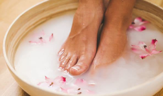 3. اغسلي قدميك بالماء الدافئ: وكرري هذه الخطوات مرتين أسبوعياً حتى تحصلي على قدمين ناعمتين وخاليتين من الجلد الميت والتشققات.