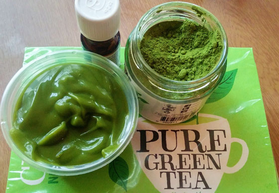 كريم الشاي الأخضر: امزجي ملعقة كبيرة من خلاصة الشاي الأخضر مع ملعقة كبيرة من ماء الورد وملعقة كبيرة من زيت اللوز وملعقة كبيرة من عصارة الصبّار وملعقة كبيرة من الشمع.