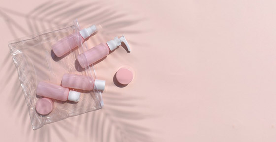 كقاعدة عامة، من الأفضل دائماً استخدام منتجات العناية بالبشرة التي ستستخدمها في المنزل أثناء السفر إذا استطعت، وبهذه الطريقة، لن تضطر بشرتكِ إلى التكيف مع المنتجات الجديدة، ولن تخاطر بأي ردود فعل سلبية أثناء العطلة. لذلك يمكنكِ دائما ملء الزجاجات البلاستيكية الفارغة بحجم السفر بالكريمات والمنظفات المفضلة لديكِ لاستيعاب قوانين السفر الجوي، وتوفير مساحة لأغراضكِ الأخرى أيضاً، لكن انتبهي إلى الالتزام بتعليمات حفظ كل منتج، على سبيل المثال: الأمصال لا بد من حفظها في زجاجات داكنة لحمايتها من التعرض للضوء والحرارة.