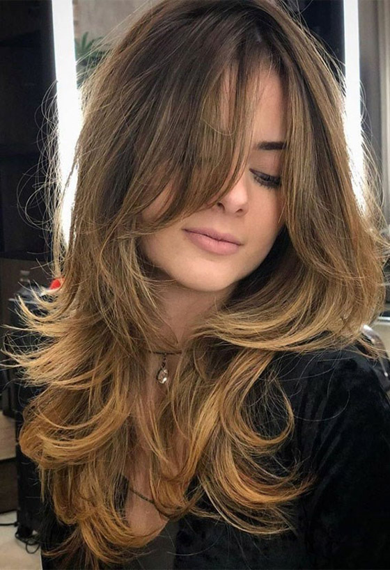 تسمى هذه التصفيفة "غرة الستائر"، تطبق بسهولة مع الشعر الطويل، حيث يمكنكِ الحصول على أطوال متعددة لشعركِ، وفي النهاية تعتمدين الغرة على جانبَيْ شعركِ بأطوال مختلفة أيضاً، تساعد هذه التصفيفة على مظهر شعر أكثر كثافة ووجه أطول، فإذا كنتِ من صاحبات الوجه الطويل، تجنبي تصفيفة الستائر.