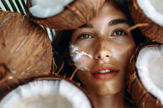 يتميّز زيت جوز الهند بغناه بحمض اللوريك، وهو يوفّر حماية طبيعيّة من الأشعة ما فوق البنفسجيّة والحرارة كما يعمل على تقوية الشعر وتعزيز متانته. يُساعد غنى هذا الزيت بالأحماض الدهنيّة في جعله يتغلغل بعمق في ألياف الشعر مما يمنع جفافها كما أنه يعمل على تغذيتها وتعزيز متانتها. يعمل زيت جوز الهند أيضاً على حماية الشعر من التجعّد الناتج عن رطوبة الجو وهو يُساهم في تعزيز لمعان الشعر.