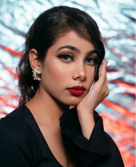تطبيق جل الحواجب أولاً واختياره بلون شعر الحاجب لإطلالة متناغمة، ثم تطبيق الكحل واختيار ظلال عيون لامع لإطلالة متناغمة مع أجواء الاحتفالات، ثم تطبيق الماسكارا المفضلة.