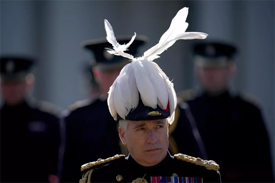 - اللواء جيمس باودر، القائد العام لقائد فرقة هاوس هولدن في ثكنات ويلينغتون في لندن، أثناء التفتيش الاحتفالي السنوي لحامية لندن المركزية وفرق فرقة هاوس هولدن.