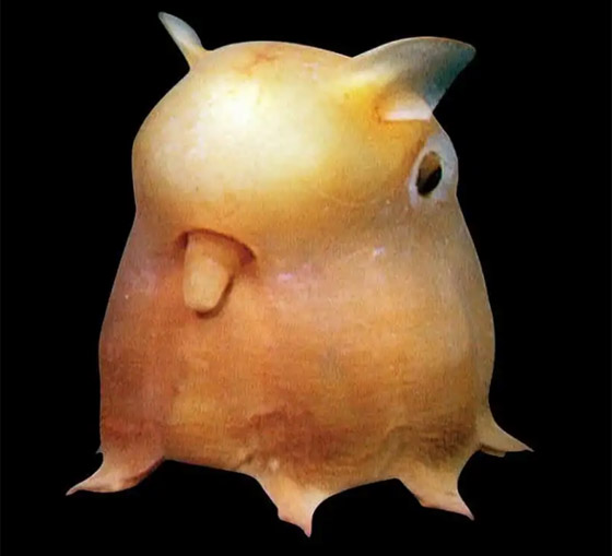 2. دومبو: مخلوق بحري شديد الندرة يعيش على أعماق كبيرة ويشبه الأخطبوط، ويتميز بجلد شفاف على عكس معظم أنواع الأخاطب الأخرى المعتمة.