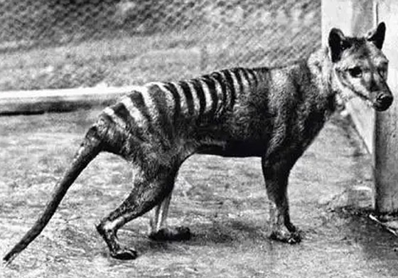 4. نمر تسمانيا: حيوان كان يعيش في أستراليا وغينيا الجديدة ويعتقد أنه انقرض في القرن العشرين، في حين تم التعرف عليه عن طريق الأحافير. يقول العلماء إنه انقرض في البر الرئيسي في أستراليا قبل آلاف السنين لكنه أكمل حياته فوق جزيرة تسمانيا إلى جانب عدد من الحيوانات النادرة الأخرى مثل شيطان تسمانيا، ويوجه اللوم في انقراضه إلى الصيد الجائر من قبل البشر، لكن هناك عوامل أخرى ساهمت في ذلك مثل بعض الأمراض والعوامل الجوية.