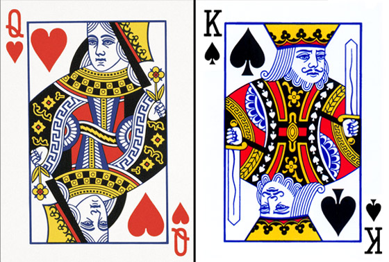 بالنسبة للملوك الأربعة الذين يظهرون على ورق حرف K، فظلوا كما هم دون تغيير، وهُم الملك تشارلمان أو قارلة على ورقة رمز القلب، والنبي داود ثاني ملوك إسرائيل على رمز جاروف البستوني، ويوليوس قيصر على ورقة الألماس، في حين أن الإسكندر الأكبر على رمز ورقة النبات.