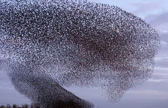 ما أغرب مشاهد آلاف من الطيور المعروفة باسم الزرزور، وهي تطوف سماء بريطانيا، حيث يبدو هذا المشهد واضحا للكثيرين هناك خلال شهر مارس من كل عام.