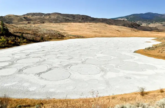 في كندا، ليس هناك ما هو أغرب من بحيرة أوسويوس التي تتبدل أشكالها كلما اشتدت حرارة الطقس، إذ تتكون أشكال دائرية للمعادن القابعة أسفل البحيرة، فيما تصبح البحيرة شديدة البياض.