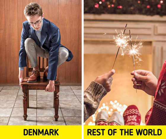 تمتلك كل دولة في العالم تقريبًا تقليدًا محددًا واحدًا يتم اتباعه في ليلة رأس السنة الجديدة، فبينما يتبادل الناس القبلات لحظة ميلاد السنة الجديدة لدى الدنمارك تقليدًا غريبا، فقبل أن تضرب الساعة منتصف الليل بقليل، يجلس الناس على الكراسي ويستعدون للقفز في الثانية مع بداية العام الجديد، يعتقد أن نسيان القفز يجلب سوء الحظ