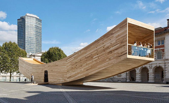 2. الابتسامة - لندن: هذا الهيكل الملتوي من تصميم مهندسي شركة أليسون بروكس، وهو مثال على هندسة الأخشاب المتقدمة، ويتخذ شكل أنبوب من الخشب المنحني.