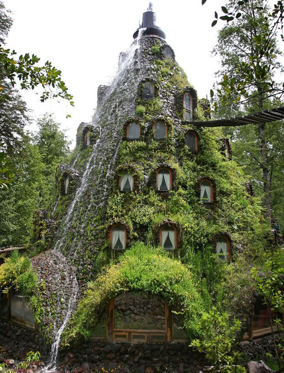 7. نزل مونتانا السحري - شيلي: تتمتع قارة أمريكا الجنوبية بطبيعة خلابة، لذا فكر فيكتور بيترمان ببناء فندق فريد داخل إحدى غابات هذه القارة.