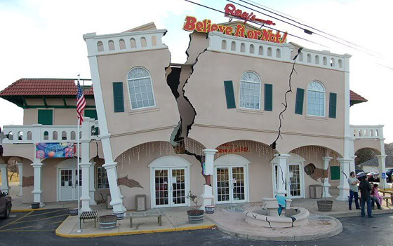 10. مبنى ريبلي - شلالات نياغارا، أونتاريو، كندا: بناء ريبلي كندا، هي واحدة من هياكل غريبة شهيرة بوجهة سياحية ساخنة من العالم، كما أنها ترمز إلى سبب انعكاس جراء الزلزال الغريب في العام 1812. وكانت الأرض مدمرة جداً وقياسها 8.0 درجة على مقياس ريختر.
