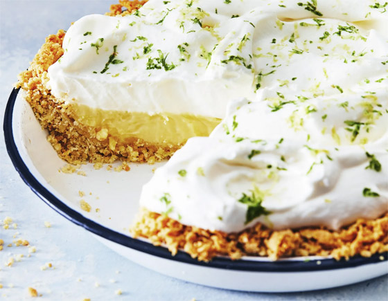 2. فطيرة "أتلانتيك بيتش": وتُصنع فطيرة "أتلانتيك بيتش" في أعلى الساحل الشرقي لولاية كارولينا الشمالية، وهي أكثر ملوحة من فطيرة الحمضيات الباردة. وتشكل الرقائق المملحة المكسرة أساس عجينة هذه الفطيرة، وتمنح حشوة الليمون محبي الحمضيات المذاق المنعش الذي يطمحون إليه.