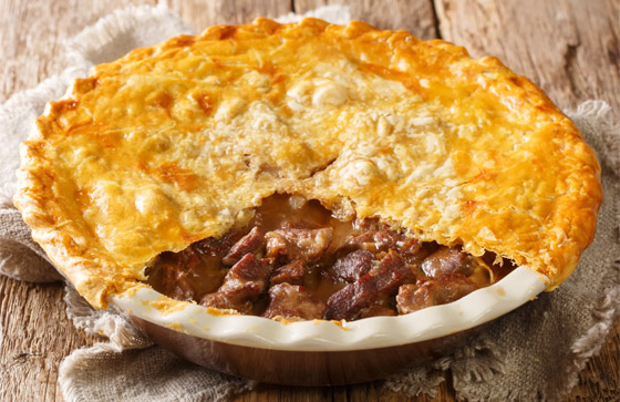 3. فطيرة لحم مغمسة بالجعة: ويبدو أن البريطانيين ومستعمراتهم أتقنوا فن فطيرة اللحم. وتُعتبر فطيرة شريحة اللحم المغمسة بالجعة المفضلة في الحانات. وتعود جذورها إلى صناعة فطائر القرون الوسطى، حيث استخدمت اللحوم المحلية ولحوم الطرائد والخضار كحشوة للعجينة.