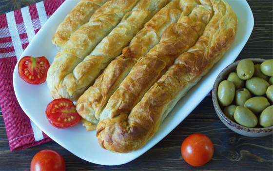 6. فطيرة البوريك، ألبانيا: وتشكل طبقات رقائق الفيلو عجينة فطيرة البوريك الألبانية، وهي فطائر لذيذة يمكن حشوها بأي مكون متوفر في المنزل، بدءا من اللحم المفروم إلى السبانخ والجبن. ويُعرف عن فطيرة البوريك المحشية بالبندورة والبصل بالبيتزا الألبانية، حيث تُوضع طبقات من البصل، ثم الكراميل، والبندورة المطهية.