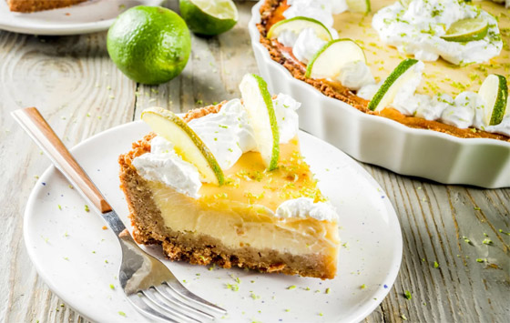 8. فطيرة الليمون الأخضر: فطيرة الليمون الأخضر المنعشة ذات المذاق المميز، أساسي تناولها لدى زيارة كي ويست (Key West)، في ولاية فلوريدا الأمريكية، حيث يتم تقديمها دومًا مثلجة ومغطسة عجينتها بالشوكولا المقرمش.