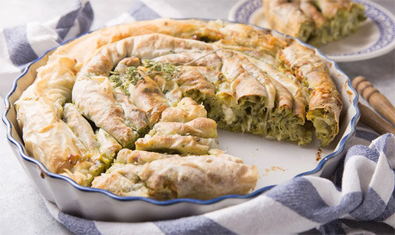 10. فطيرة سباناكوبيتا، اليونان: ويشتهر المطبخ اليوناني بهذه الفطيرة، المتنوعة بين الحلوة والمالحة المذاق. وفطيرة سباناكوبيتا تحتوي على حشوة تتألف من السبانخ وجبنة الفيتا توضع في عجينة فيلو. وهناك فطيرة شبيهة بها تدعى أورتوبيتا، تُصنع حشوتها من الخضار البرية. أما فطيرة تيروبيتا فهي ليست إلا فطيرة الجبن اللذيذة، فيما تتألف حشوة فطيرة ماريدوبيتا من السمك.