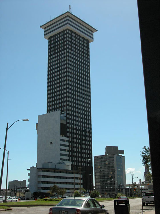 4- برج بلازا في نيو أورلينز لويزيانا: يتكون البرج من 45 طابقاً وانتهى بناؤه عام 1968، وكان يستخدم كمبنًا للمكاتب وأخلي المبنى عام 2002 لمشاكل العفن والأسبستوس، وبيع عام 2011 في مزاد علني.