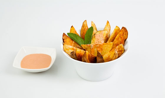 يشوح البصل والثوم في زيت الزيتون حتى يصبح لونهما ذهبيًا، ثم يضاف البابريكا والفلفل الحار والفلفل الأسود والملح والكمون، ثم تضاف البطاطس وتقلب جيدًا مدة 5 دقائق وترفع وتقدم ساخنة.