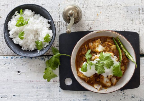 5- قدّمي فيليه السمك مغطّى، مع ما تبقى من الزبادي، والقليل من الليمون الحامض، وكمّ إضافي من الكزبرة.