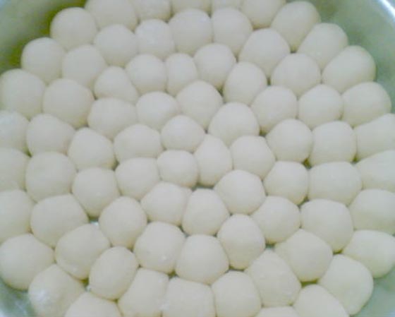 ١. نخلط الدقيق، السكر، الحليب، الخميرة، الملح، الزيت والماء.