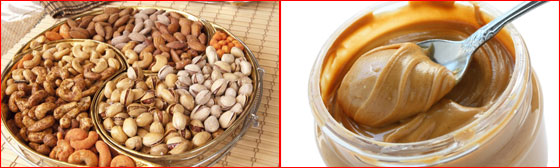 4. المكسرات وزبدة البندق: دحضت دراسات صحية عدة اعتقاد أن المكسرات من أسباب السمنة لاحتوائها على كمية كبيرة من السعرات الحرارية. ووجدت أن تناول المكسرات تخفض نسبة الإصابة من أمراض القلب والأوعية الدموية السكتة القلبية.