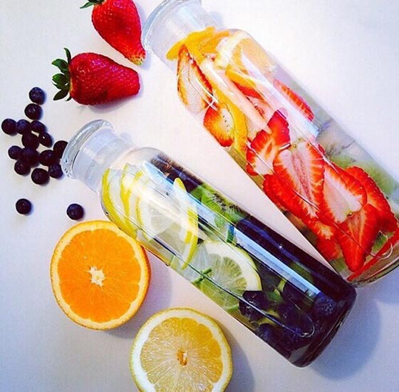 أضف بعض الفاكهة: اختر فاكهتك المفضلّة وقطّعها إلى شرائح وانقعها في إناء من الماء طول الليل، واشرب المنقوع مبرّداً. جرّب إضافة شرائح البطيخ أو الحمضيات، او انقع قطعاً من الأناناس في الماء لساعتين. جرّب هرس قطع من التوت والكرز وأضف المياه المعدنية أو المياه الغازية (الفوّارة) عليها واشربها.