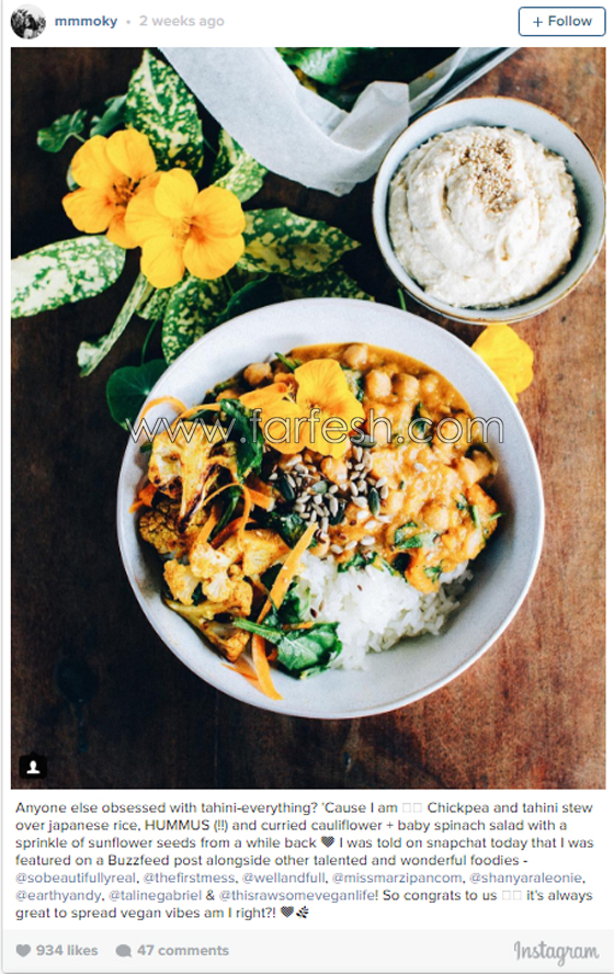 هناك الكثير من الكتب والوصفات النباتية على رفوف المتاجر. ولكن، كيف تجعل أطباقك لذيذة وإن كانت تستند فقط إلى استهلاك الخضراوات؟ هل من الممكن حقاً جعل كعكة جيدة دون إضافة الحليب والبيض أو الزبدة؟ إذا لم تكن قد استسلمت لهذا النظام الغذائي، هنا 13 حساب إنستغرام تعرض وصفات ملونة لذيذة لكنها 100٪ مأكولات نباتية، قدمها موقع "Elle" الفرنسي.